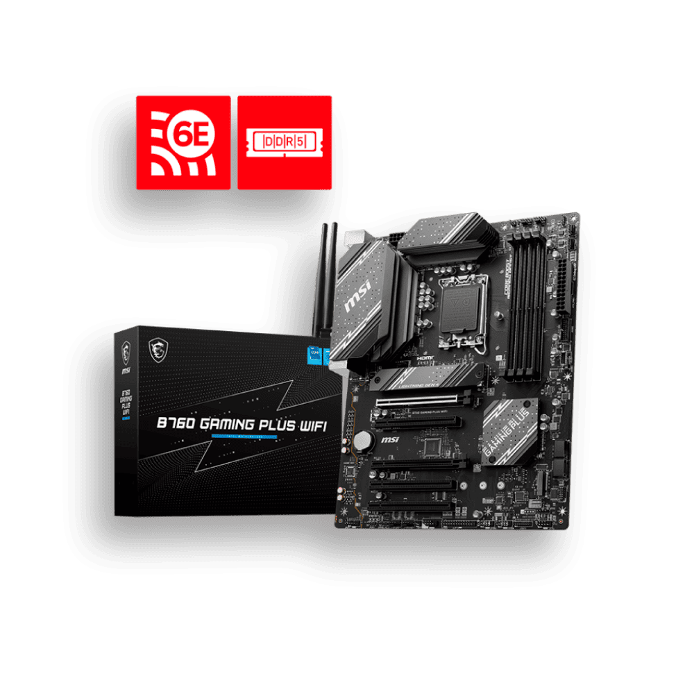 B760 GAMING PLUS WIFI está diseñado con toneladas de conectividad, herramientas flexibles y una conveniente solución Wi-Fi con versión de memoria DDR5 para jugadores que lo quieren todo