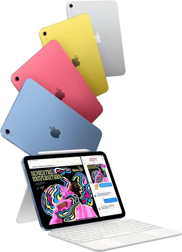 - Touch ID integrado, desbloquea el iPad con tu huellaInspírate, exprésate, diviértete con el iPad. Su poderoso chip A16 te brindan rendimiento para agilizar todo lo que hagas. Disfruta de la potente pantalla Liquid Retina de 11” y exprésate sin límites. Toma notas, usa varias apps al mismo tiempo con total fluidez. Además, con accesorios diseñados para el iPad, tus posibilidades se multiplican. Consíguelo ahora!Ahora con el ultrarrápido chip A16 y el doble de almacenamiento inicial: 128 GB.◊Consultar los avisos legales Una pantalla Liquid Retina de 11 pulgadas con diseño de borde a borde a todo color.◊Consultar los avisos legales Y compatibilidad con el Magic Keyboard Folio, el Apple Pencil (USB‑C) y el Apple Pencil (1.ª generación)