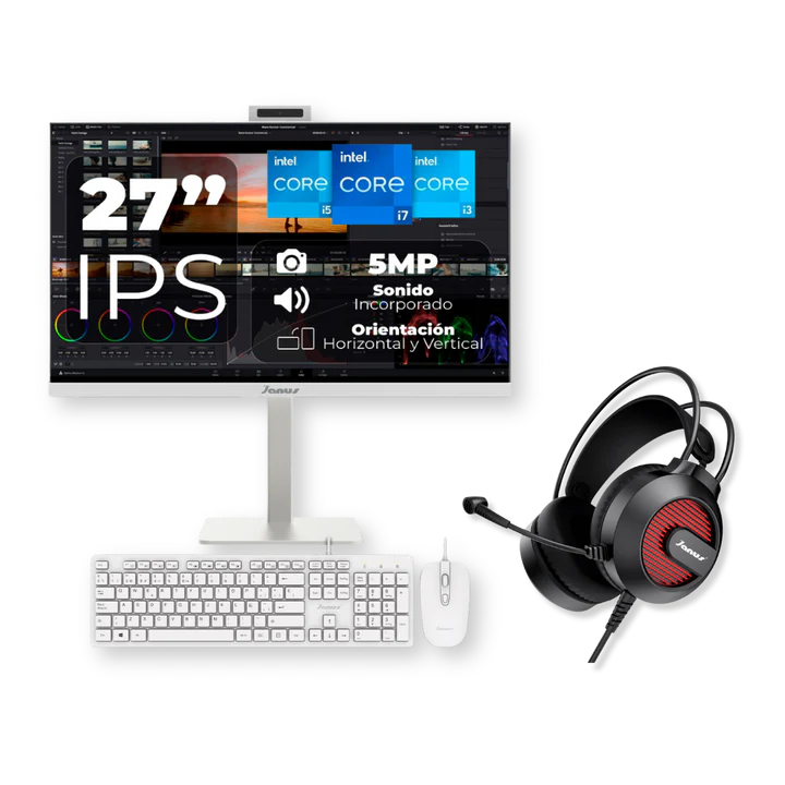 ODO EN UNO BLANCO JANUS PANTALLA 27″ resolucion 1920×1080, INTEL Core™ i7-14700, nucleos 8, núcleos de rendimiento 12, VALORES ANTES DE IVA