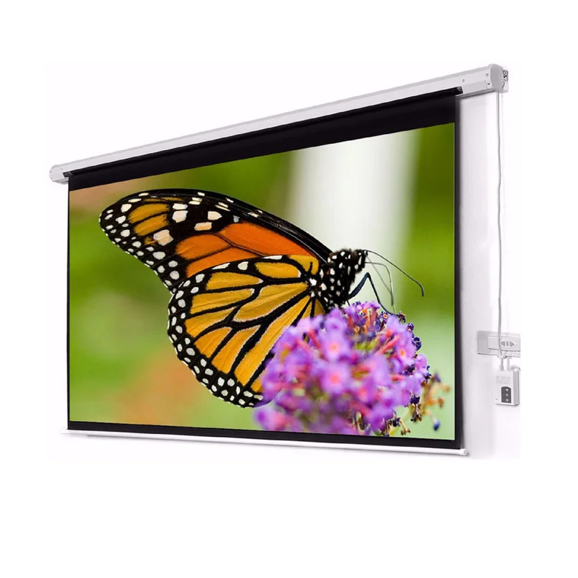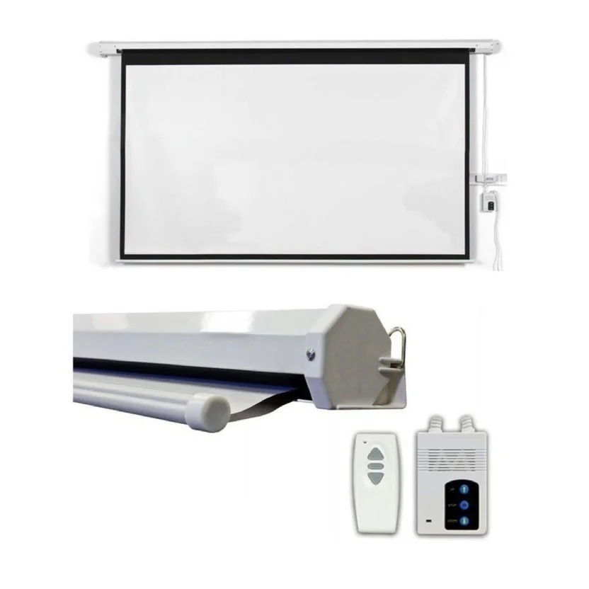 Posee sistema eléctrico de alta calidad integrado, con dos controles remotos, uno que permite manejar a distancia la pantalla y fácilmente adaptarla a la altura deseada, y otro que tiene un interruptor fijo que cumple la misma función del control remoto.